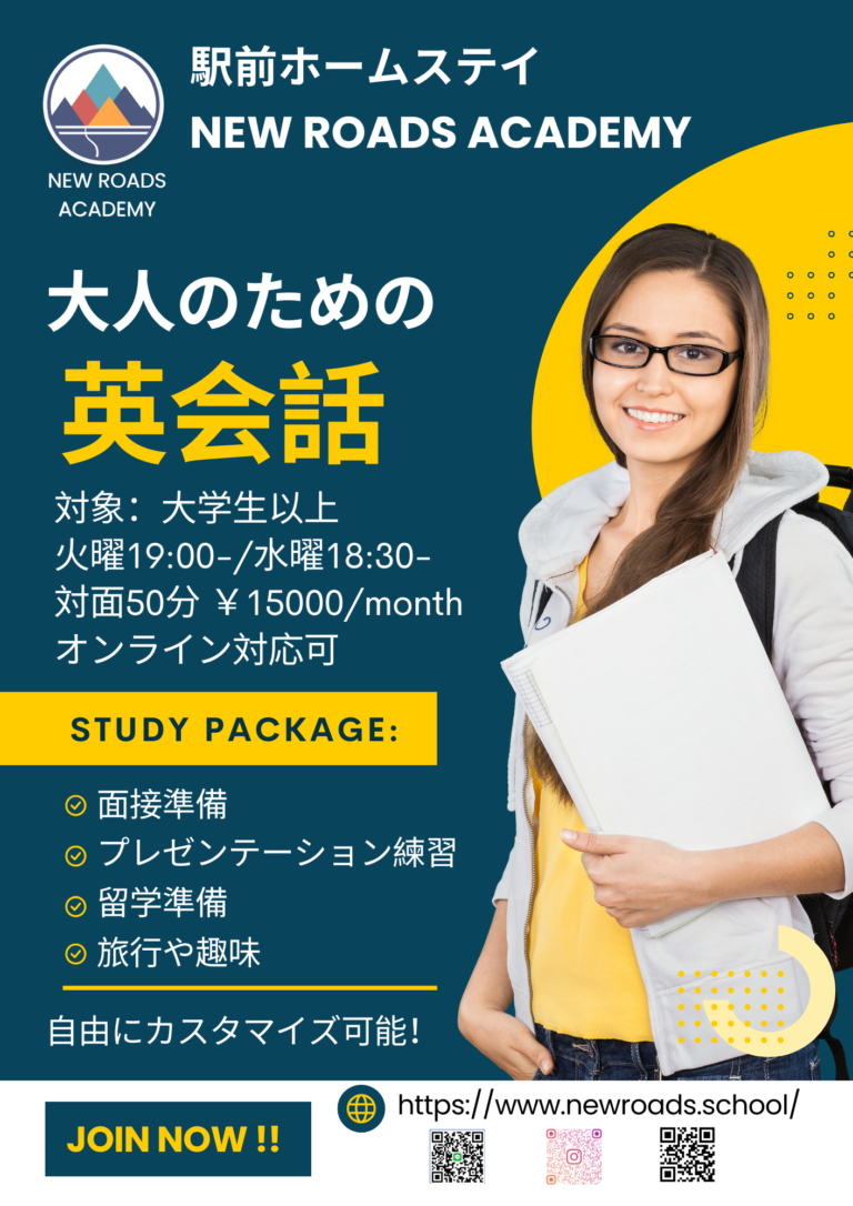 🌟New Roads – Native English で【大人向け英語レッスン】を開始しました!